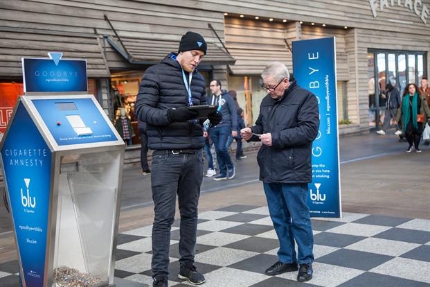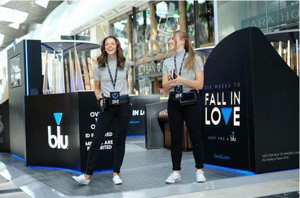 The theme of this campaign, ‘dating’, arguably appealed to a younger audience. Young sales representatives invited shoppers into branded booths and try blu PLUS+ and its range of flavours. Shoppers were subsequently encouraged to sign up to a six-week blu trial, with a starter kit worth £56, heavily discounted to £8 (comparable to the price of a pack of cigarettes).4